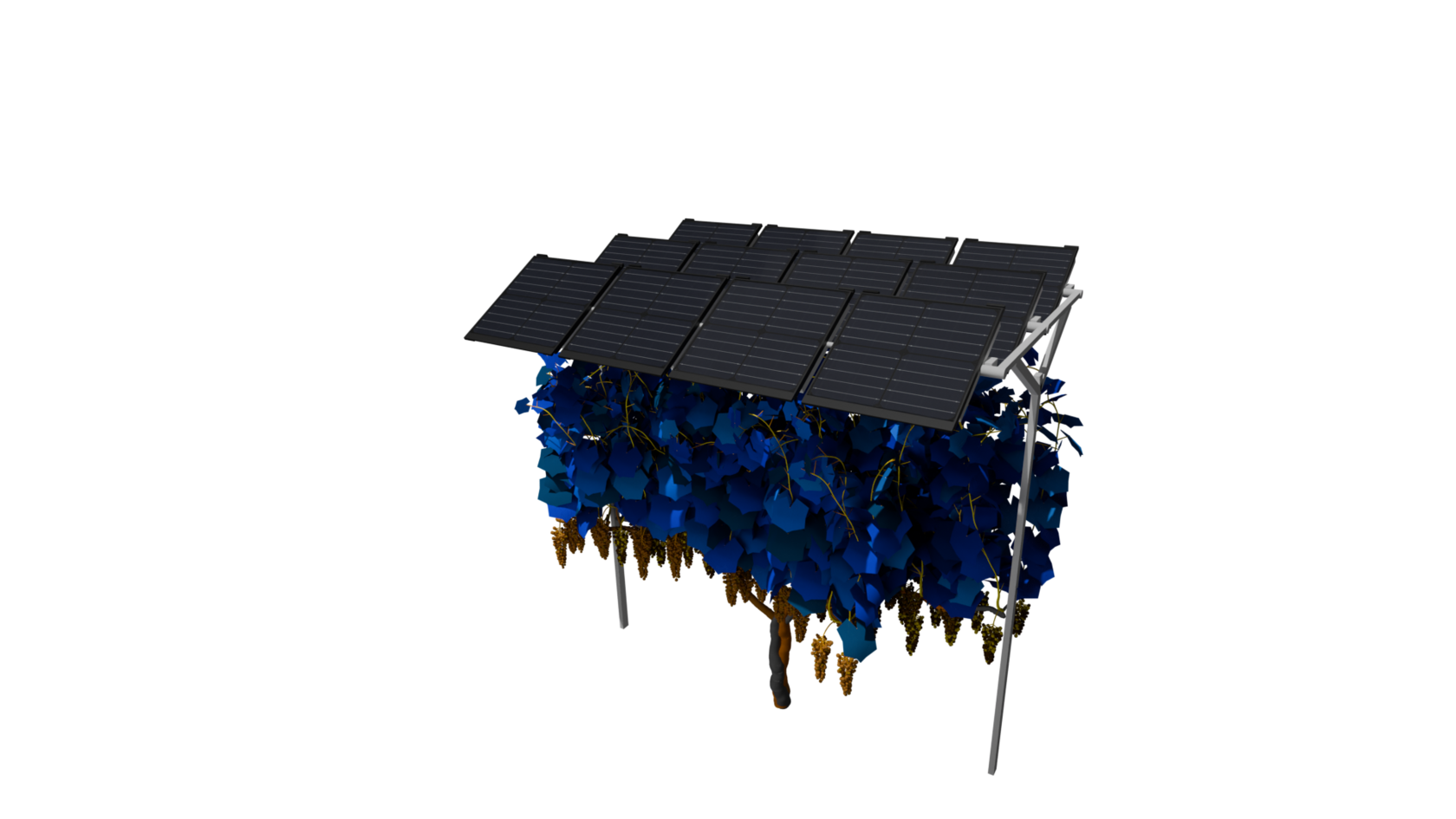 Using weather data, the system moves panels horizontally to shield crops from heavy rain or hail.